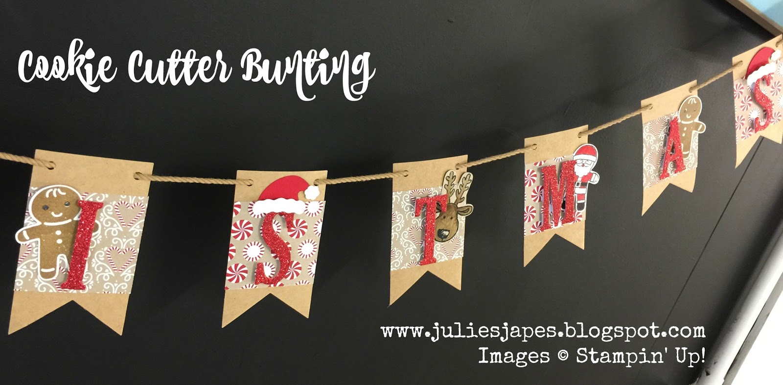 I added a piece of Candy Cane Lane paper and then set about creating the little guys from the Cookie Cutter Christmas set to decorate the bunting.