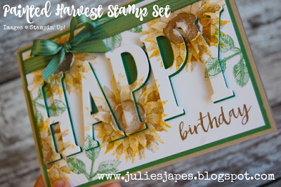 Good morning and welcome to our team Blog Hop today. Yesterday saw the launch of the Autumn/Winter catalogue, often referred to as the Christmas Catalogue. Well this year one of my favourite bundles isn't actually a Christmas bundle but a bundle with Thanksgiving in mind. We don't celebrate Thanksgiving in the UK, although I would love to, but this set is so much more than a Thanksgiving set and the coordinating Leaf Punch is just divine! So with our theme of Autumn Colours this month I knew straight away that I wanted to use the Painted Harvest bundle!